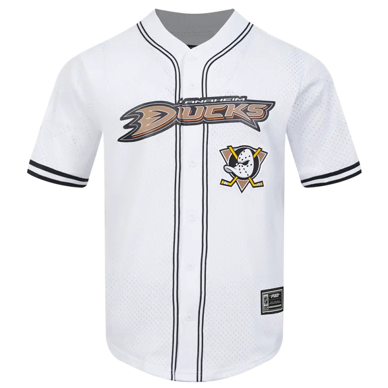 NHL ANAHEIM DUCKS CLASSIC MESH MEN’S BUTTON DOWN SHIRT (WHITE\/BLACK\/WHTE)