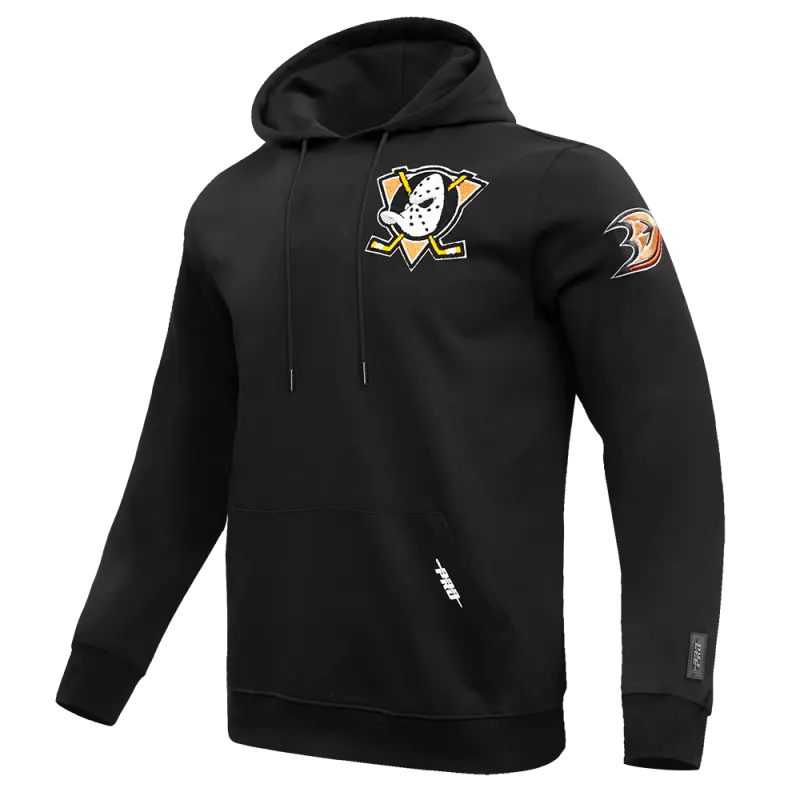 NHL ANAHEIM DUCKS CLASSIC CHENILLE MEN’S DOUBLE KNIT PULLOVER HOODIE (BLACK)