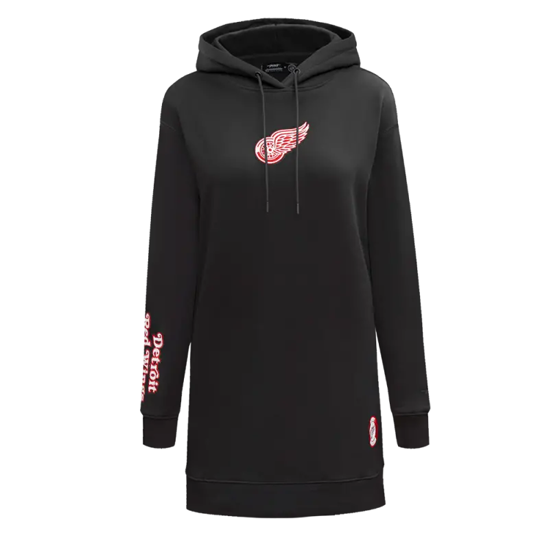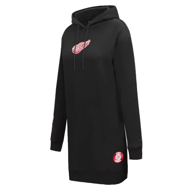 NHL DETROIT RED WINGS CLASSIC WOMEN’S FLEECE HOODIE DRESS (BLACK)