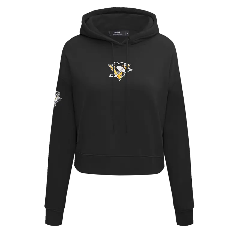 NHL PITTSBURGH PENGUINS CLASSIC WOMEN’S CROPPED PULLOVER HOODIE (BLACK)