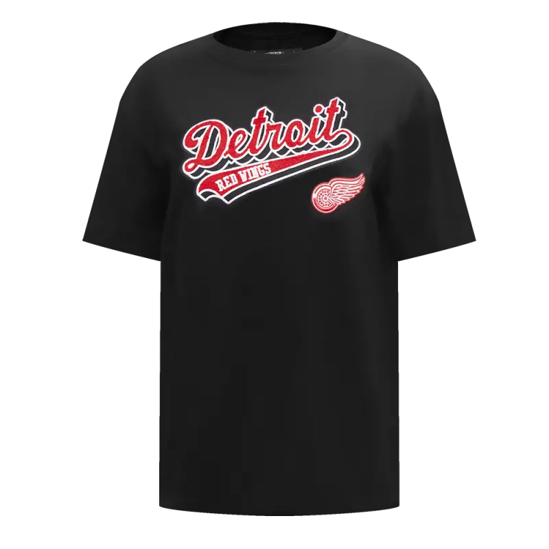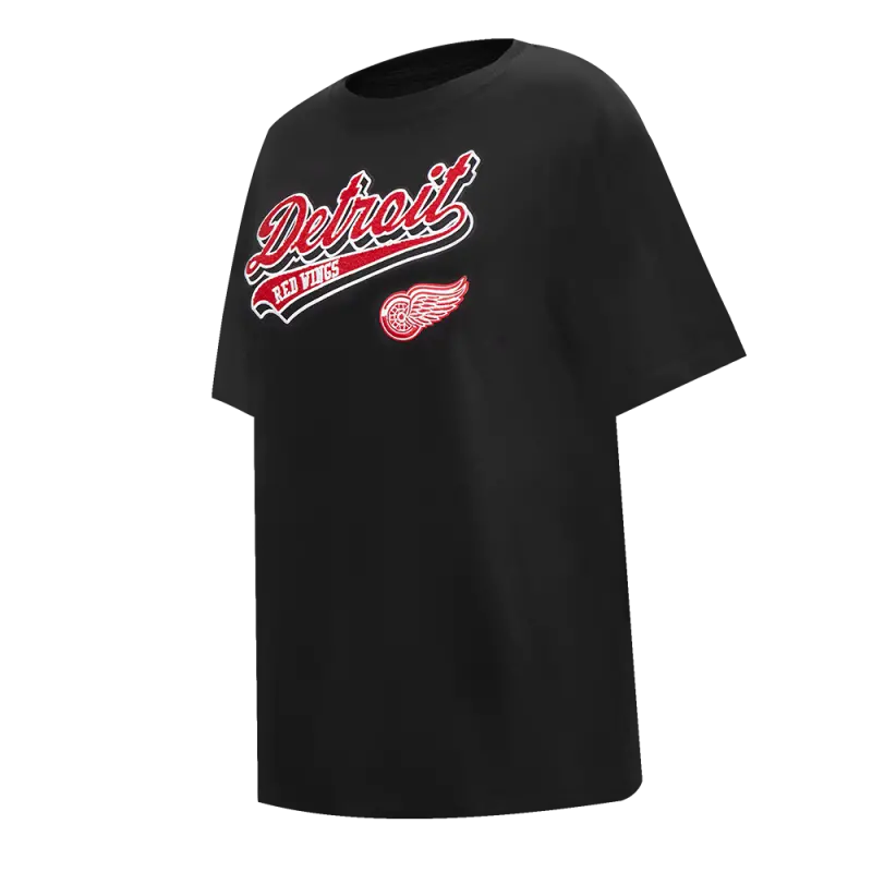 NHL DETROIT RED WINGS SCRIPT TAIL WOMEN’S SINGLE JERSEY BOXY TEE (BLACK)