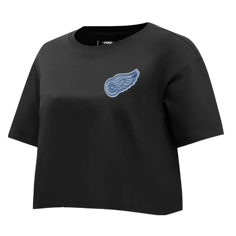 NHL DETROIT RED WINGS VARSITY BLUES WOMEN’S BOXY TEE (BLACK)