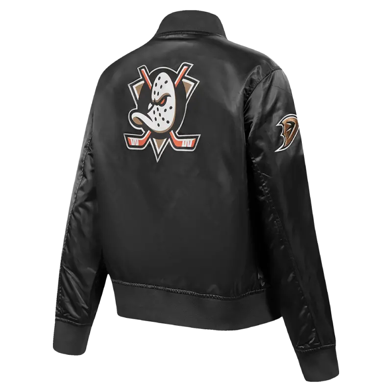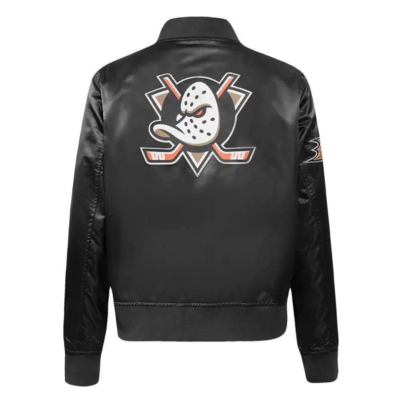 NHL ANAHEIM DUCKS CLASSIC WOMEN’S SATIN JACKET (BLACK)
