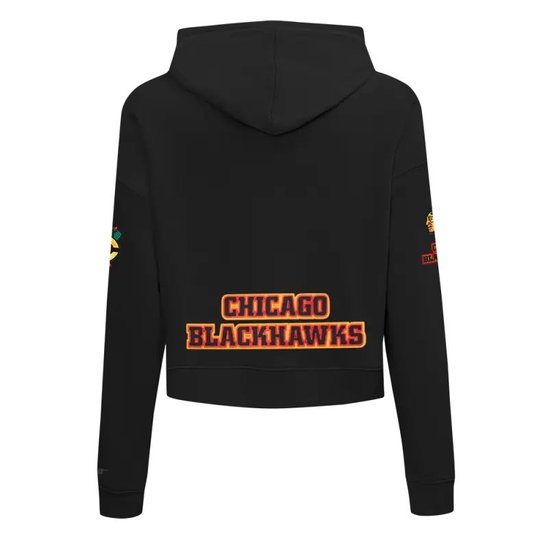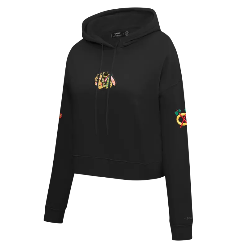 NHL CHICAGO BLACKHAWKS CLASSIC WOMEN’S FLC CROPPED PO HOODIE (BLACK)