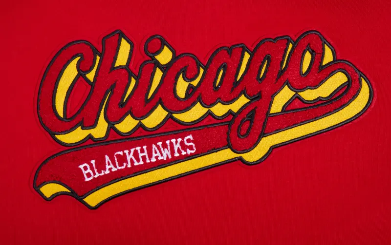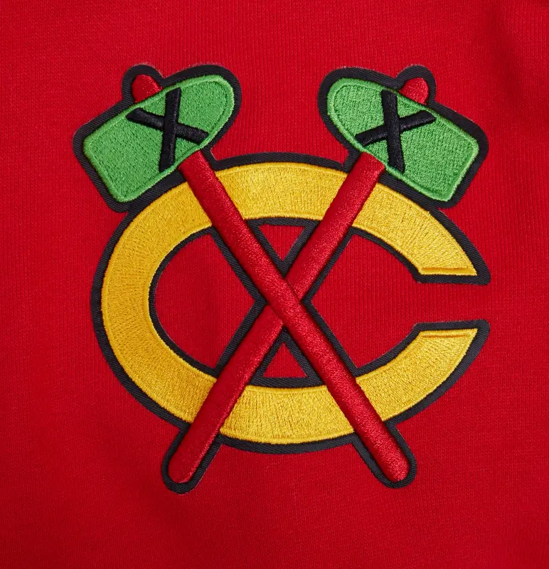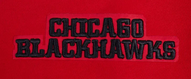 NHL CHICAGO BLACKHAWKS SCRIPT TAIL MEN’S RIB FLEECE PULLOVER HOODIE (RED\/BLACK)