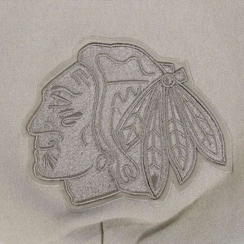 NHL CHICAGO BLACKHAWKS WINGSPAN MEN’S DROP SHOULDER FLEECE PULLOVER HOODIE (TAUPE)