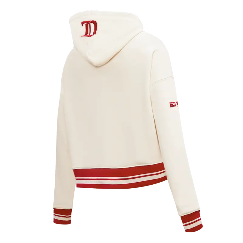 NHL DETROIT RED WINGS RETRO CLASSIC WOMEN’S RIB CROPPED PULLOVER HOODIE (EGGSHELL\/ RED)