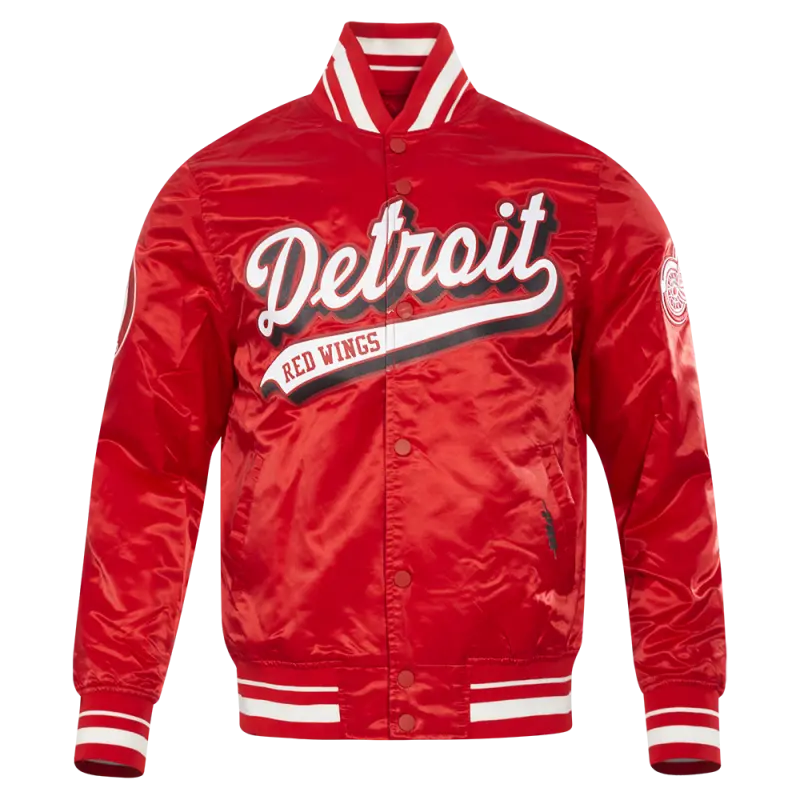 NHL DETROIT RED WINGS SCRIPT TAIL MEN’S SATIN JACKET (RED)