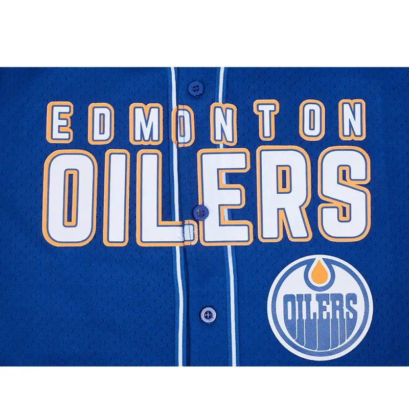 NHL EDMONTON OILERS CLASSIC MESH MEN’S BUTTON DOWN SHIRT (DODGER BLUE)