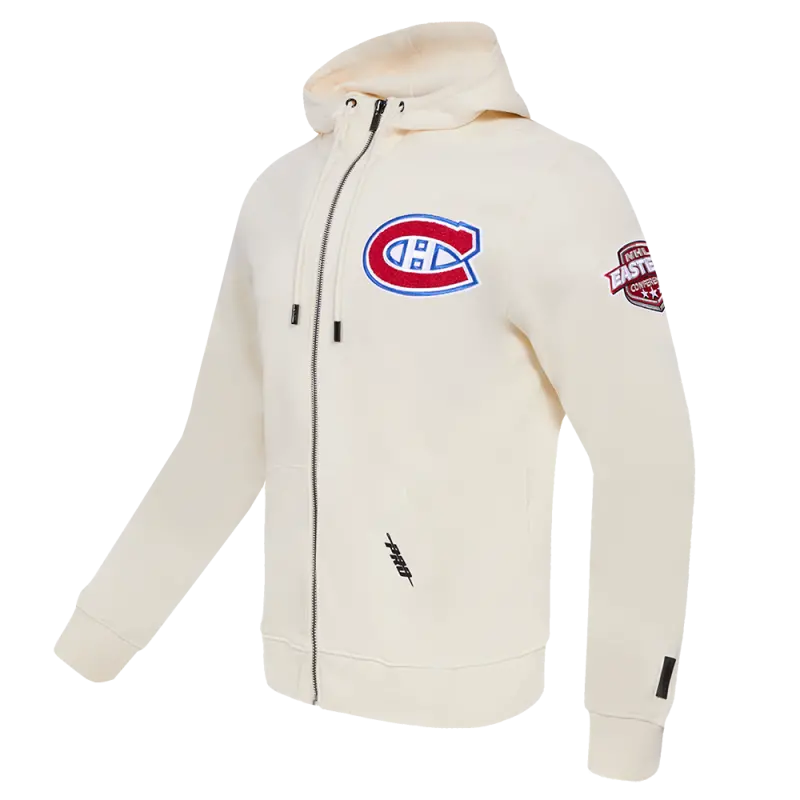 NHL MONTREAL CANADIENS CLASSIC CHENILLE MEN’S FULL ZIP PULLOVER HOODIE (EGGSHELL)