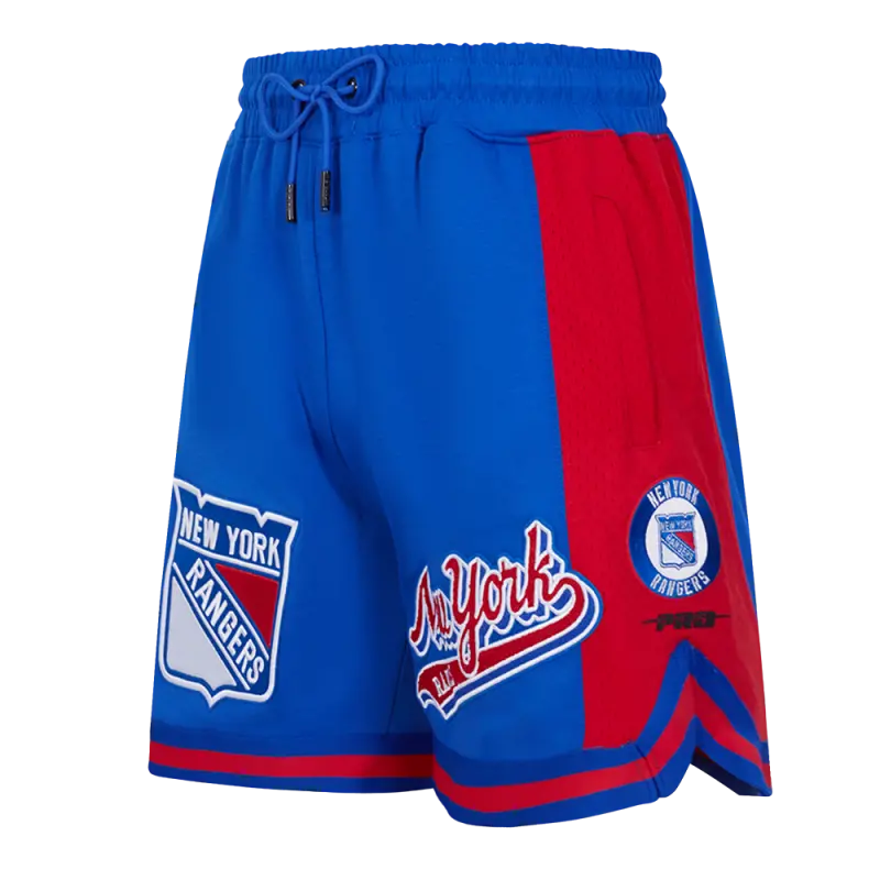 NHL NEW YORK RANGERS SCRIPT TAIL MEN’S DOUBLE KNIT 2.0 SHORT (ROYAL BLUE\/RED)
