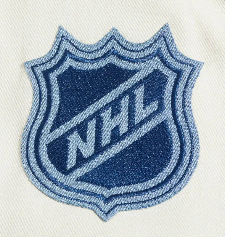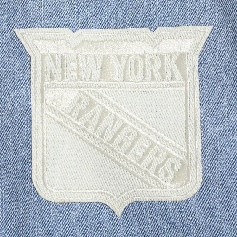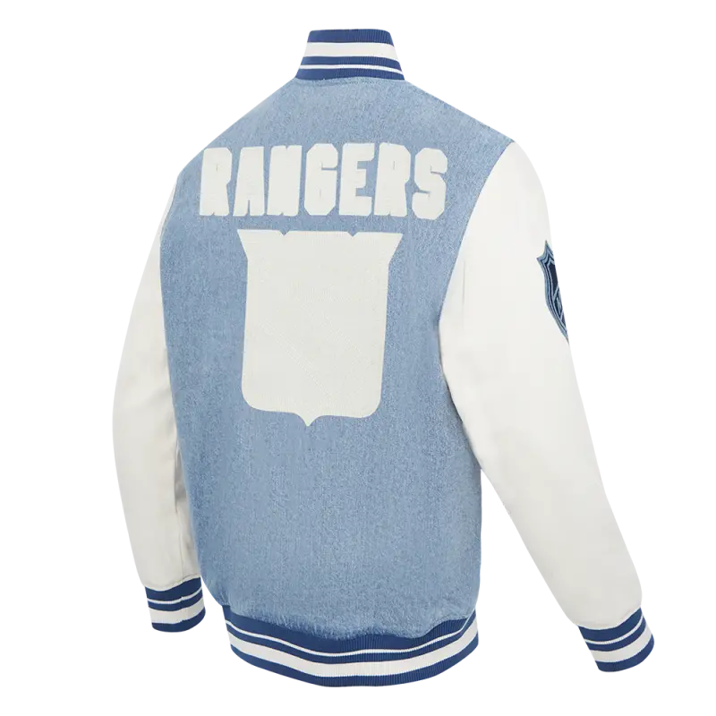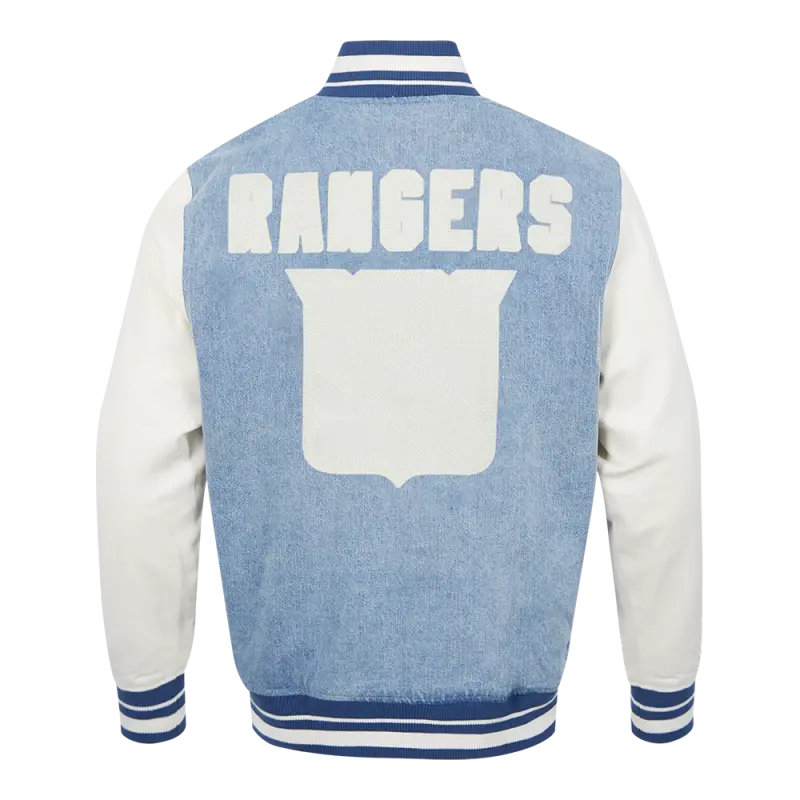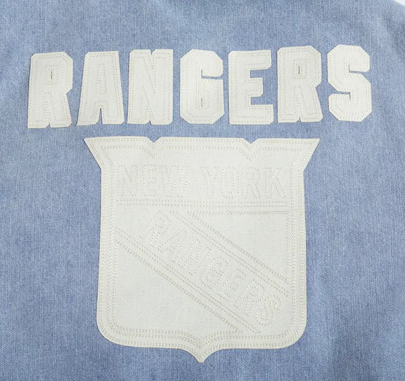 NHL NEW YORK RANGERS VARSITY BLUES MEN’S DENIM VARSITY JACKET (DENIM\/LINEN)