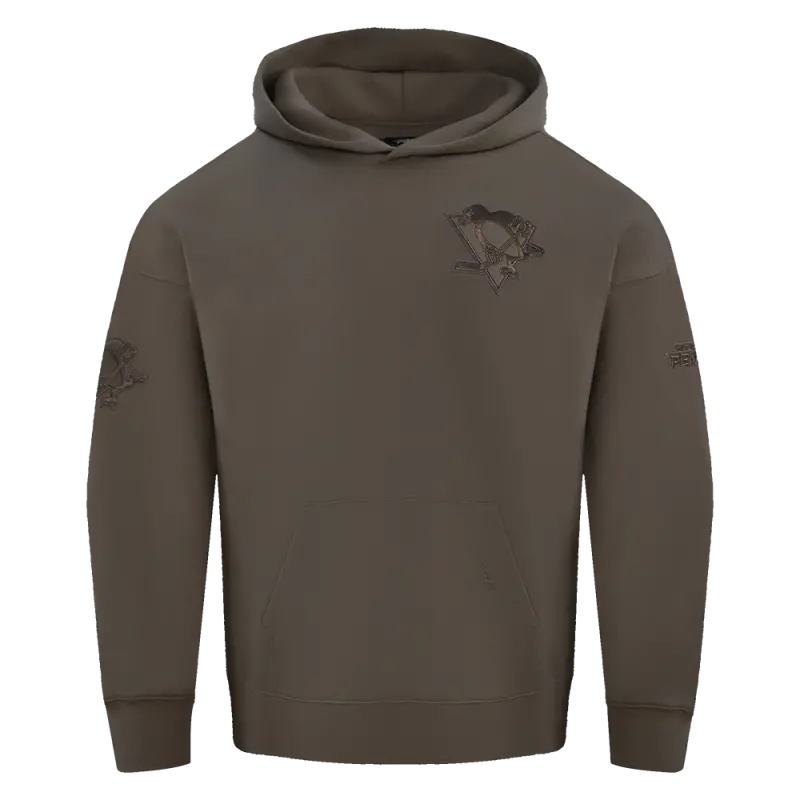 NHL PITTSBURGH PENGUINS NEUTRAL MEN’S DROP SHOULDER PULLOVER HOODIE (DARK TAUPE)
