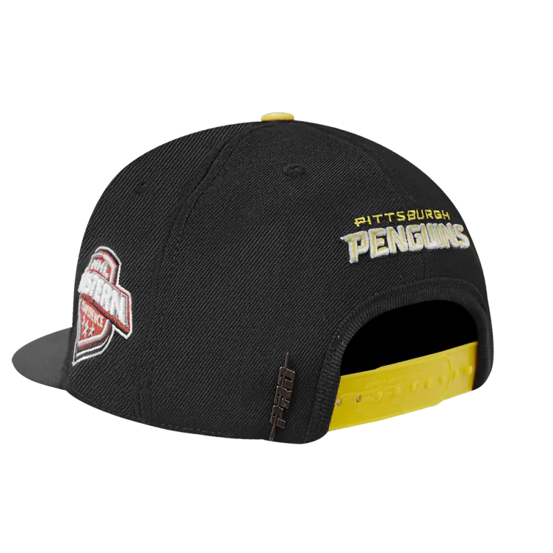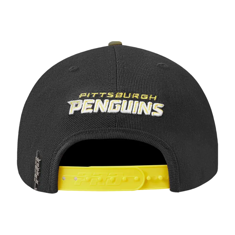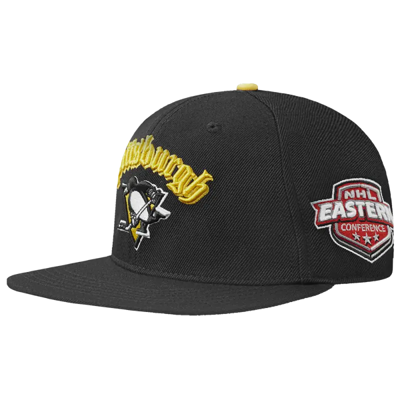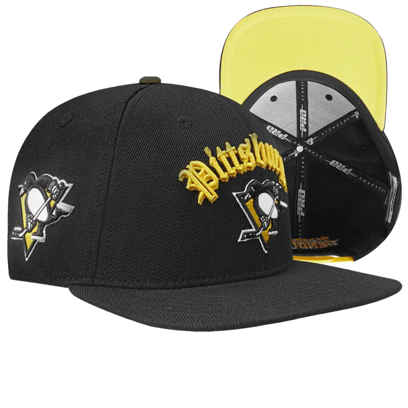 NHL PITTSBURGH PENGUINS OLD ENGLISH UNISEX 6 PANEL SNAPBACK HAT (BLACK)