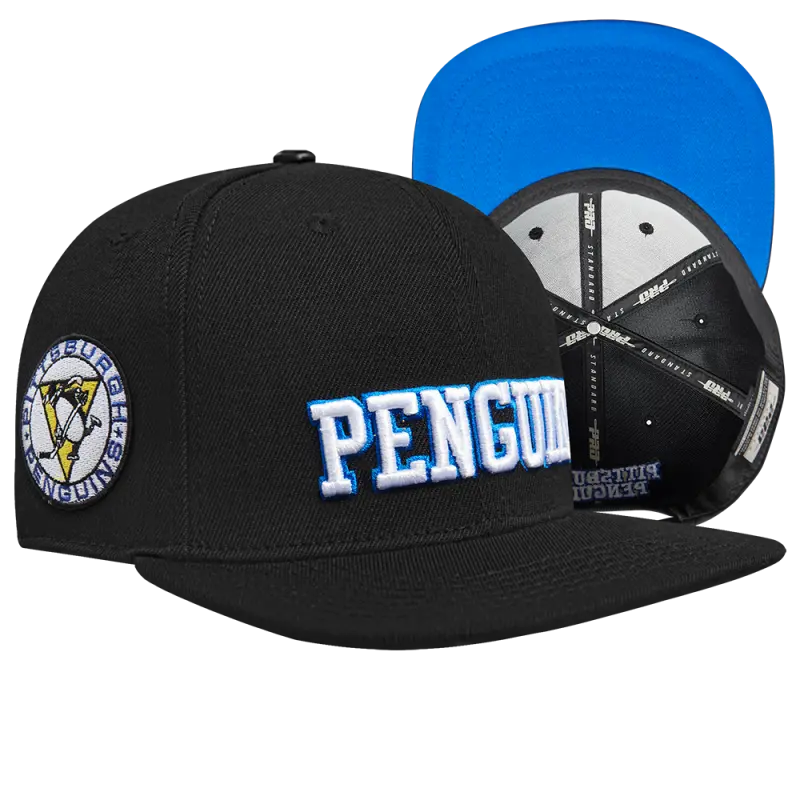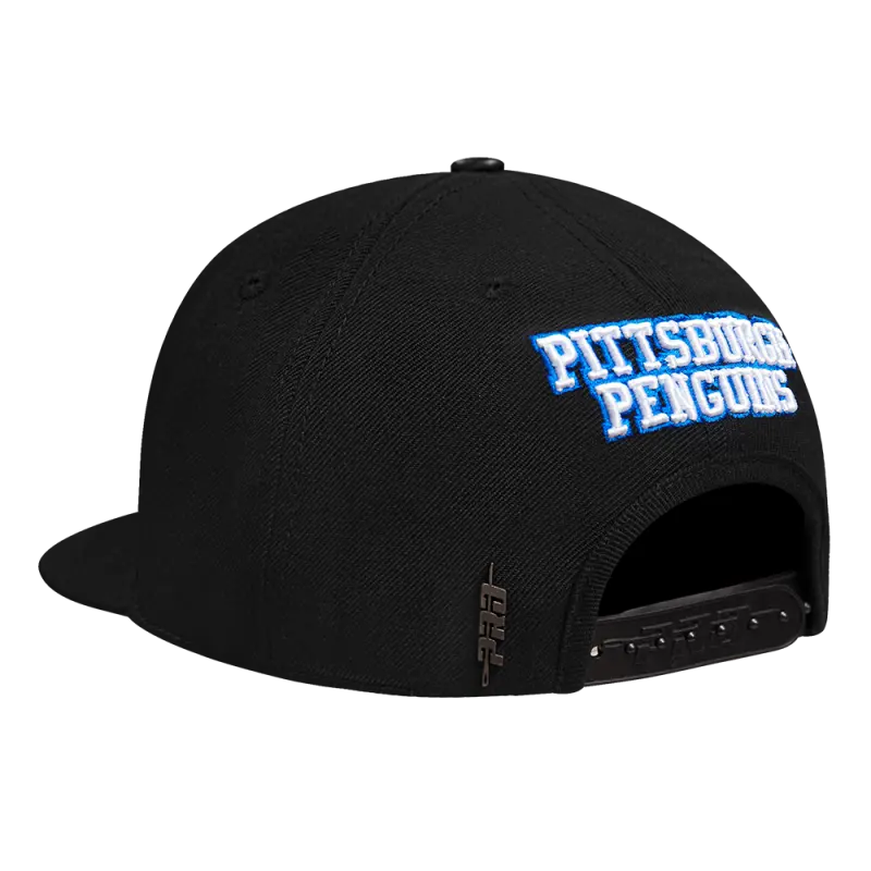 NHL PITTSBURGH PENGUINS RETRO CLASSIC UNISEX WORDMARK LOGO WOOL SNAPBAC (BLACK)
