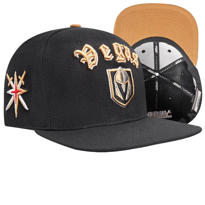 NHL VEGAS GOLDEN KNIGHTS OLD ENGLISH UNISEX 6 PANEL SNAPBACK HAT (BLACK)